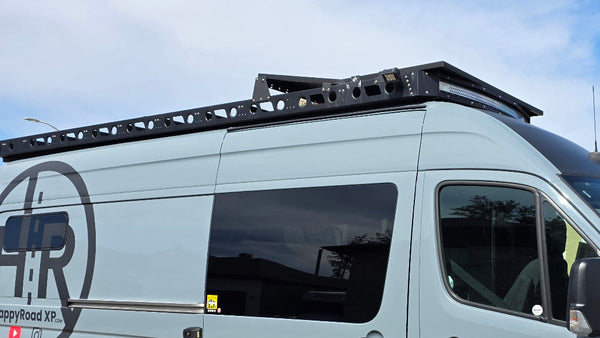 The toughest HAPPYROAD XP Mercedes Sprinter, DIY Roof Rack is ready for your next adventure. Our rack provides vast space for storage, solar, accessory and more. The HAPPYROAD XP Roof Rack for Mercedes Sprinter is mounts directly to the factory body holes on Sprinter structure, to provide a low-profile and quick installation. With the adjustable bars positions, lightweight, multi-functionality and bolt–on. The HAPPYROAD XP Roof Rack is the perfect addition to your Sprinter. With a unique modular design, it can be shipped to your door and installed very simply. Complete your total HAPPYROAD XP DIY package with a ladder, inside cabinet or somes others products available in our online shop.